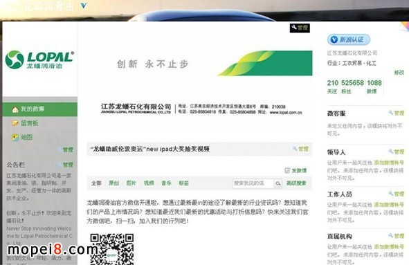 公司博采國內外先進經驗,憑籍技術、管理、專家、市場優勢,通過創新機制、規范運作、生產現代化,市場占有率、產品美譽度得到迅速提升,品牌度得到有效提高。2008年11月,龍蟠成為中國第一家加入聯合國“全球契約”組織的潤滑油企業;2009年11月,龍蟠參加了“臺灣江蘇周”大型經貿交流活動;2010年2月,龍蟠入選上海世博會“民營企業聯合館”,成為第一家進入這個展館的潤滑油企業;2010年7月,龍蟠被第三屆世界環保大會評為“世界低碳環境中國推動力百強企業”;2010年11月,龍蟠被國內知名財經媒體經濟觀察報評為“中國最具創新企業”候選企業之一。