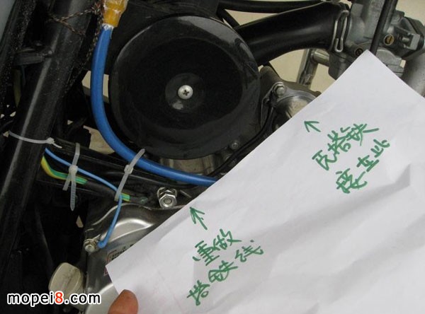⑤、點火系統(tǒng)的防水防潮也很重要,點火器高壓包盡可能按裝在坐墊下面,高壓包按裝牢固,鐵蕊接地《否則會產(chǎn)生干擾源》,高壓包的銅扦座要接觸良好《刮掉銅銹壓緊簧片》。高壓線的向題我認(rèn)為一般的就可以《競枝車,進(jìn)口多缸大排除外》到要考慮是高壓帽的防水向題,有一種硅膠的高壓線8.8毫米粗的國產(chǎn)高壓線到不錯,便宜實用,洗車時高壓槍對著沖也沒向題。