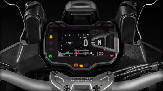 和杜卡迪1299 Panigale摩托車一樣,Multistrada 1200配備有Cornering ABS(彎道防抱死制動(dòng)系統(tǒng))、Ducati Traction Control(牽引力控制系統(tǒng))和Ducati Wheelie Control(后輪平衡系統(tǒng))。