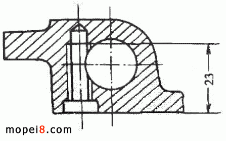 2. 左半曲軸箱上的車速表軟軸固定螺孔,原來也是個通孔,油可通過此孔外滲,現也改為不通孔,起到了防漏的效果。具體結構見圖。
