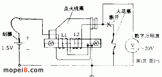 下面介紹兩種對點火線圈局部或匝間短路故障的簡易判斷方法。 1. 找一臺型號為 DT-830HR 一類的數字萬用表和一節 1.5V 的干電池,就能方便地測出點火線圈次級是否有短路現象。萬用表選用交流 20V 擋,在圖 2-53 電路中,只要用點火線圈的低壓輸入端刮擦干電池正極,這時萬用表顯示的交流電壓瞬時值達到 3 ~ 12V 時,說明點火線圈次級沒有短路現象,可以放心地去用。筆者為此曾專門做過測試,點火線圈次級哪怕只有一匝短路,無論干電池在初級回路怎么刮擦,數字萬用表也沒有示數。http://www.wxjdsoft.com/