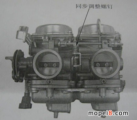 化油器同步即指CV型雙化油器的兩個節氣閥開度應隨油門線的動作始終保持一致,保證化油器對雙缸的可燃混合氣供給保持一致,發動機的兩個缸可以輸出相同的功率。當化油器的調整不當時,可能造成發動機的雙缸在轉速和輸出功率上不一致,在使用過程中出現加速不暢、動力下降、行駛無力等。