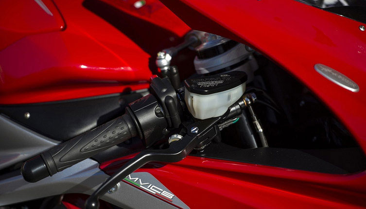 F4 RR的車頭部分無(wú)疑是一項(xiàng)高科技杰作:一對(duì)直徑為320mm的碟剎盤配置了當(dāng)前技術(shù)最為先進(jìn)的Brembo放射型卡鉗。錫材質(zhì)的前叉表面非常光滑,使得Ohlins減震伸縮自如。減震系統(tǒng)的控制通過(guò)特殊的操控軟件來(lái)實(shí)現(xiàn),讓車輛在絕大多數(shù)路況下都能獲得最佳的減震反饋。Marzocchi前叉和Ohlins減震器的優(yōu)秀性能在任何情況下都超乎駕駛者想象。