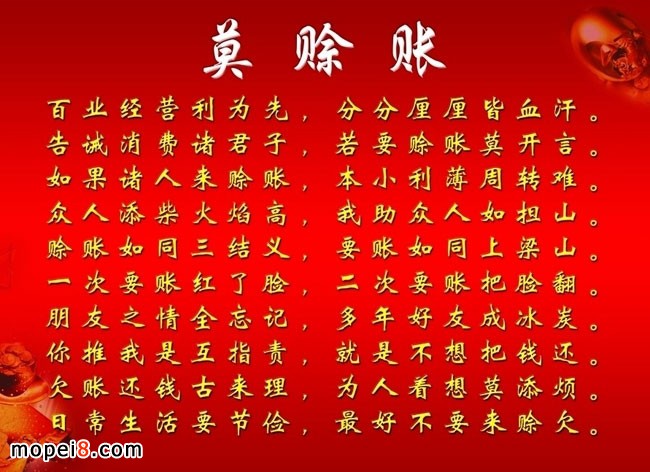 4.在賒賬開始的時候已經為日后得罪客戶和失去客戶埋下了伏筆,多少合作關系由最初的客氣、理解支持、信任,變成最后的催帳、拖帳、躲帳、翻臉、對罵,鬧成官司的。