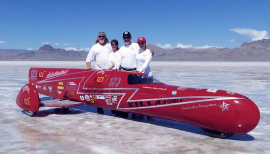 由 Eva Hankansson 建造的“Killajoule”,是目前世界上速度最快的電動摩托車。它以每小時(shí) 389.219 公里的最高時(shí)速在“博納維爾鹽灘極速挑戰(zhàn)賽”上刷新并改寫了多項(xiàng)摩托車速度紀(jì)錄。這輛電動摩托車以兩次的平均速度 387.328 km/h(本數(shù)據(jù)經(jīng)過 AMA 官方認(rèn)證)打破了 John Stege 此前保持的 347km/h 紀(jì)錄。