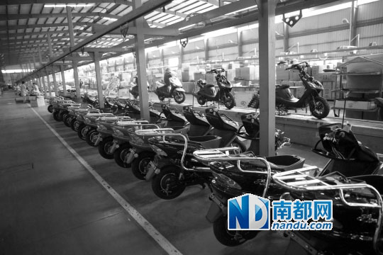 離摩托城幾公里遠(yuǎn)的大福摩托廠,生產(chǎn)線轉(zhuǎn)型,已開始生產(chǎn)電動(dòng)摩托車。