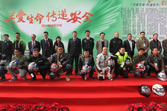 中國道路安全協會常務副理事長樊漢國、公安部交通管理局副巡視員、中國道路交通安全協會秘書長王京,中國汽車工業協會摩托車分會秘書長李彬等有關部門領導出席了本次發布會并發表了講話。同時,大長江集團、宗申集團、林海集團、川崎重工、金城集團、五羊-本田摩托(廣州)有限公司、新大洲本田摩托有限公司、浙江春風動力股份有限公司、濟南輕騎摩托車有限公司、上海雅馬哈建設摩托車銷售有限公司、永恒頭盔等摩托車行業企業領導、經銷商代表、媒體記者以及摩托車消費者代表共百余人也參加了發布會。