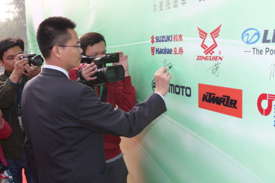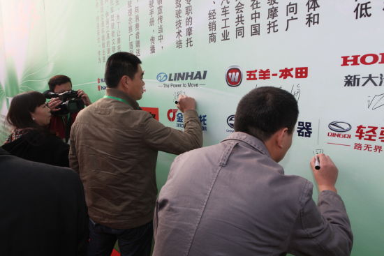 本次活動的重點即為發布并簽署“關愛生命,傳遞安全”倡議書,中國汽車工業協會摩托車分會秘書長李彬首先宣讀了倡議書的內容。隨后,10家摩托車整車制造企業代表分別在倡議書上簽字,象征著中國摩托車生產企業將發揮自身優勢,積極參與到摩托車安全意識推廣、安全理念傳播的工作中來。
