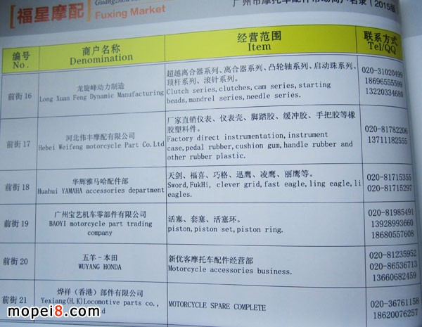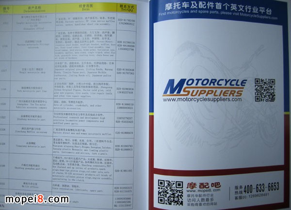 《2015廣州摩配市場導購手冊》完整收錄了廣州五個摩配市場的批發商信息,是最新、全、準的一本大尺寸(正度16開)書刊。是采購摩配或廠家推廣必備的工具書!
