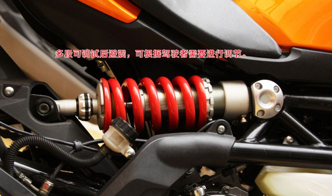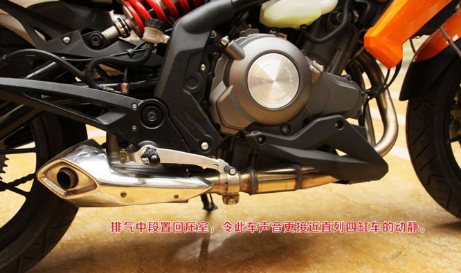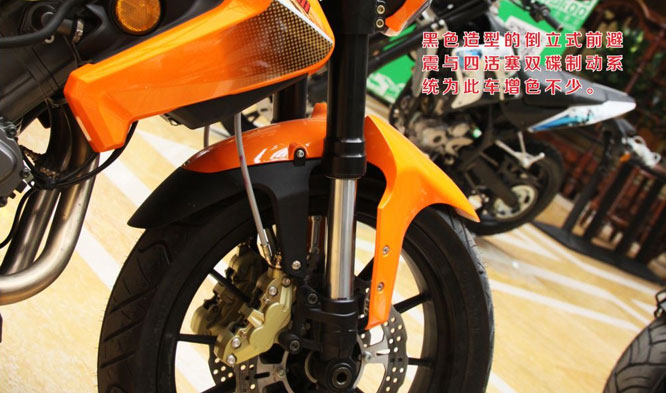 側面造型上,如果能把下肚兜改為與車身一致的橘黃色,排氣改為深色(也許很多人正因為這不銹鋼的亮色更喜歡也說不準),再把制動液備用壺弄成深色,估計會令整車的色彩搭配更為協調。