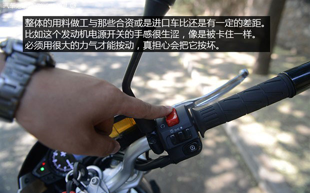 說了優點,再聊聊不足吧,國產大排量摩托在整體做工和質感上還是有很多需要提高的地方。如果你仔細觀察過進口大排量摩托車,甚至那些所謂的水貨車,之后會發現國產車和它們相比要明顯差了一截,這一點幾乎在車身每一處細節的處理上都有所體現。畢竟價格擺在這里,用幾乎一半的價錢獲得進口車80%以上的性能表現,心理上還是比較容易接受的。