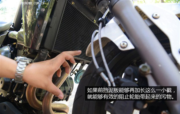 不過在一段時間的使用中還是暴露出了一些比較明顯的問題,比如經常使用的轉向燈開關、總電源開關的手感就非常生澀也很單薄,不但操作不順暢,還有一種隨時會被按壞的感覺。在經歷了一場小雨之后,我發現前輪擋泥板設計的長度不夠,前輪帶起的泥水會直接甩在散熱器上,不但很難清洗影響美觀,嚴重了還會堵塞甚至損壞散熱器。
