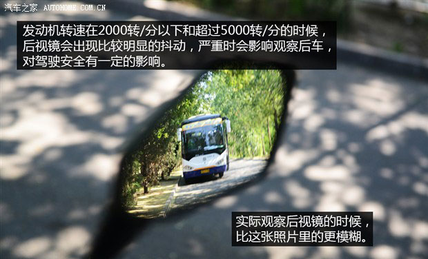 另外,兩個后視鏡在低速行駛和轉速超過5000轉的時候都會出現明顯的共振,以至于無法看清后面的車輛,對于駕駛安全還是有一定影響的。而以上這三點都是完全可以通過技術升級而避免的,希望廠家今后能夠加以改進。