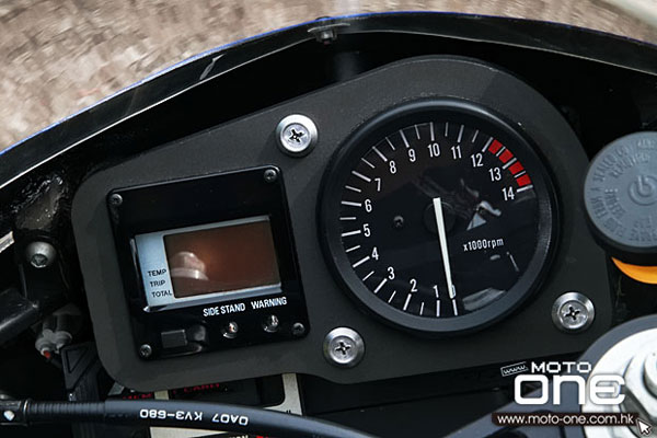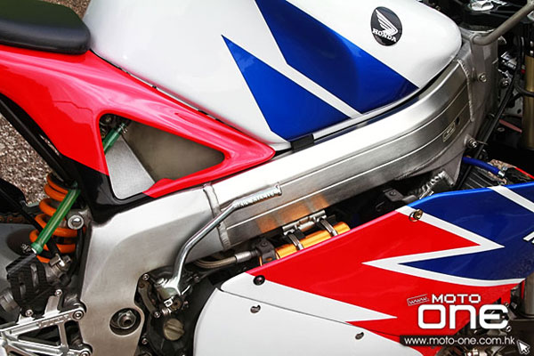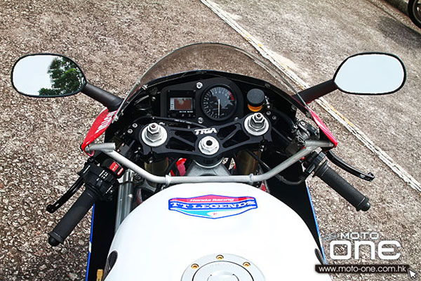 ●除了睹后鏡、掣盒及儀表板外,大部份已更換了補(bǔ)品,包括HonDA RVF400的可調(diào)校倒立前叉、TYGA上眼鏡、日本GALESPEED鍛造剎車手泵、賽車油壸、Ohlins釘把等等。