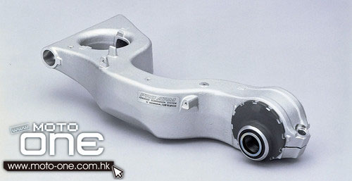 ●單尾擔(dān)設(shè)計是由HONDA跟ELF共同研發(fā),首次使用單尾擔(dān)PRO-ARM的是參戰(zhàn)SUZUKA 8耐的4沖1986 HonDA RVF750的V4戰(zhàn)車(RC30的前身),功能是方便耐力賽戰(zhàn)車快速更換輪胎。