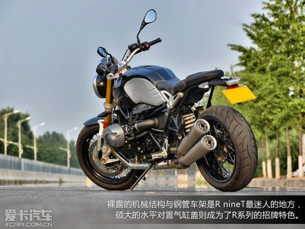 雖然寶馬推出R nineT的出發點,是為了打造一輛復古的摩托車,但筆者個人認為它并不是非常的復古,如果跟杜卡迪的GT1000這種Café Racer相比,R nineT就顯得相當現代了,話雖如此,其車身細節還是帶著淡淡的思古幽情,怎么說呢?它沒有采用質輕堅硬的鋁合金車架,而使用編織式鋼管車架加上可拆卸式的副車架,創意十足卻又帶些古典味(早期的摩托車都采用鋼管車架)、雙環式儀表盤、充滿散熱鰭片的發動機外殼、在一般街車上較難看到的鋼絲輪圈,這些都是R nineT充滿古典味的地方。