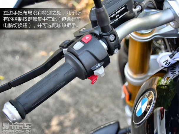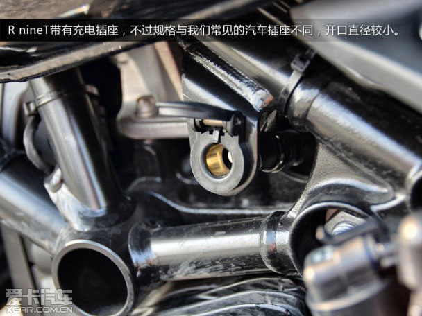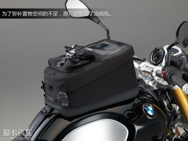 如果你曾經接觸過寶馬摩托車,你會發現寶馬旗下的摩托車配置相當齊全——加熱把手、電動風擋、行車電腦等等然人眼花繚亂的配置都會出現在上面。不過在R nineT上,就顯得比較簡單了。除了行車電腦外,加熱把手、LED轉向指示燈為選配,更沒有風擋可以電動調整。此車的儲物空間的擴充性也不錯,可選配多功能油箱包與后包,油箱包上還有透明塑料防水窗。而且,這些包都具有防水功能,車身下方還有充電插座提供電源。