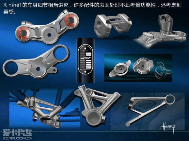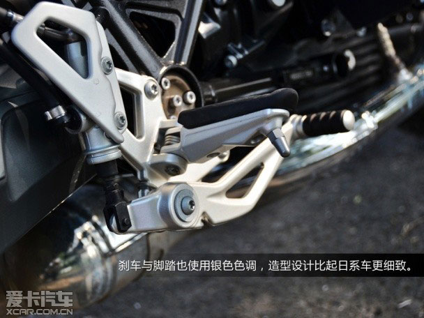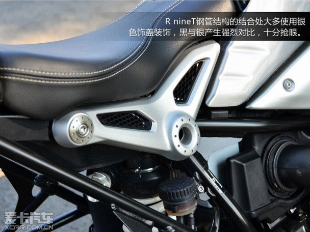 另外,從很多細節上,我們可以看到許多寶馬對于R nineT的用心,例如大燈遮光罩上的BMW標志,手把固定座上的“BMW Motorrad”字樣、鋼管結合處的焊接工藝良好,并且在設計當初就考慮到了美感問題,大量采用銀色鋁材作為車身配件(如腳踏、換擋桿、車架接合處),形強烈的對比。