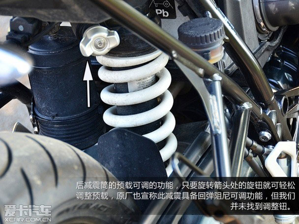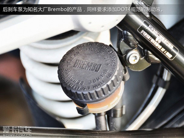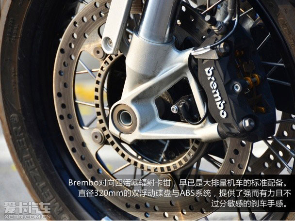 R nineT運用上許多寶馬摩托車的先進科技,對于操控有著狂熱直著的車迷,想必第一眼會看到那對金光閃閃的前叉。這對46mm的倒立式前叉,是取材于寶馬當家跑車S1000RR,從這項配置可以看出寶馬對于R nineT的期望與產品定位。不過,這對前叉并沒有可調功能,但對于不上賽道的車主而言,它已經可以滿足大多數人的需求。后懸掛則為單避震設計。與前叉相同,后減震筒的行程為120mm,搭配第三代Paralever懸掛系統,它能有效消除軸傳動車型在后懸掛動態不夠穩定的缺點。值得注意的是,原本我們以為R nineT配置了免內胎的輻條輪框,不過事后經過查證,R nineT配置的仍然是需要內胎的傳統輪框,對于一輛極速超過200km/h的摩托車而言,似乎不太妥當。