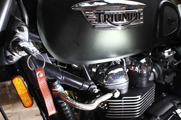 消光軍綠的車身,鍍鉻元件的妝點(diǎn),鋼絲輪圈的匹配,這是你在路口稍微停歇時(shí),可以一一欣賞的重點(diǎn)。高比例的復(fù)古設(shè)計(jì),你只需換上那年代的服裝,半世紀(jì)前的騎 乘樂趣,你可以很快的於當(dāng)今模擬。不過當(dāng)你閉上眼睛遙想往日情懷的美好時(shí),綠燈一亮,油門一扭,那飽滿的扭力,很快的會把你拉回現(xiàn)實(shí),這扎實(shí)的加速力道, 像是英國佬的拗脾氣般,著實(shí)讓你印象深刻而難以忘懷。