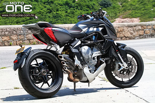 ●MV AGUSTA RIVALE 800是難以定義的車種,可以說是NK及SUPERMOTO的混合體。較高的座高及前傾座姿,與轪把距離感十分近。