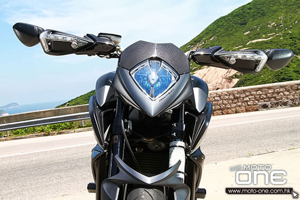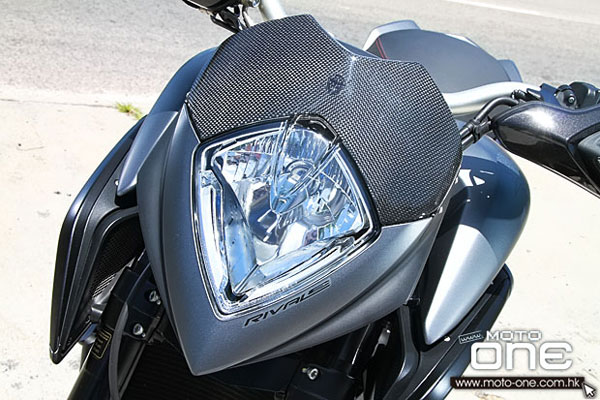 ●MV AGUSTA RIVALE 800的前后避震較跑車版F3 800長,前者前后避震沖程為150mm及130mm,跑車版為125mm及123mm。