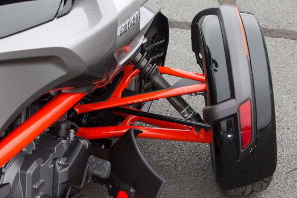 重新設計的車身,通過暴露Rotax發動機的一部分,淡化部分人對其“帶輪子的雪地摩托”的認知,新的鋼管車架和擺臂動若野獸,靜若工藝品。全新的設計不僅僅提升了F3的視覺吸引力,還得到了巡航艦愛好者的親睞。