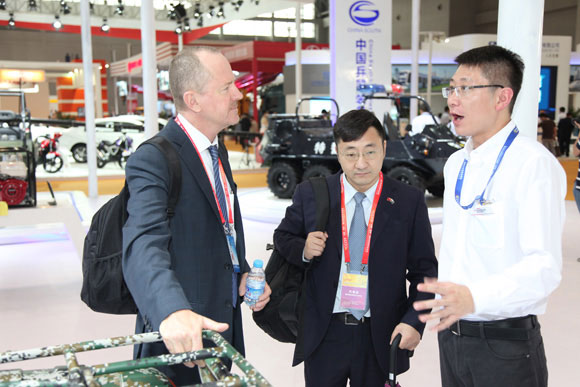 兵裝集團董事、總經理、黨組副書記徐留平出席開幕式并蒞臨建設股份展臺視察。徐留平詳細了解了展出的具體情況,對建設股份給予了勉勵,并提出了相關的工作要求。陪同視察的有兵裝集團總經理助理、長安汽車股份有限公司總裁張寶林、西南地區部主任熊萍、南方摩托車公司董事長、總經理、建設股份董事長李華光、兵裝集團發展計劃部副主任賈立山等。建設股份總經理呂紅獻熱情接待了徐留平一行并詳細介紹了相關情況。