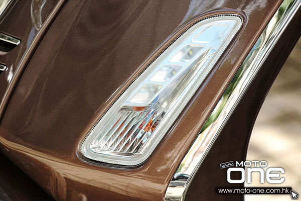 至於Primavera的其余裝備包括招牌式的鐵殼車身、單搖臂油壓彈簧避震、單筒尾避震、前碟煞尾煞車鼓、前后輪框均是11寸、LED指揮燈,而座椅底只可擺放開面帽等等。