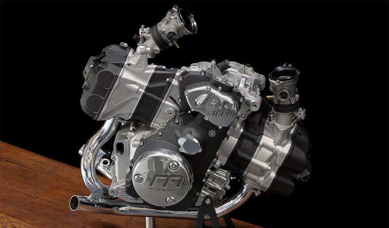 發動機可以說是Midual最匪夷所思的地方,它自行開發的水平對臥發動機與寶馬的拳擊手有異曲同工之妙。排量為1036c.c.的發動機采用水冷和油冷兩種方式,最大馬力106匹(8000轉),峰值扭矩為100牛米(5300轉)。