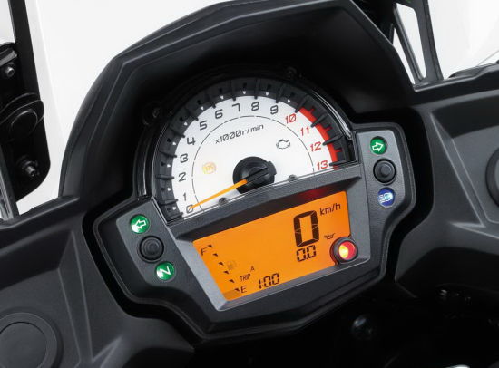 該款多功能儀表使用堆疊組合的方式,融入了現款ER系列,易讀,美觀的特點。除了油位表,數字速度計,時鐘,里程表和雙閃燈提示功能外,新功能包括:剩余里程顯示,平均,/瞬間燃油消耗率和經濟模式燈功能。