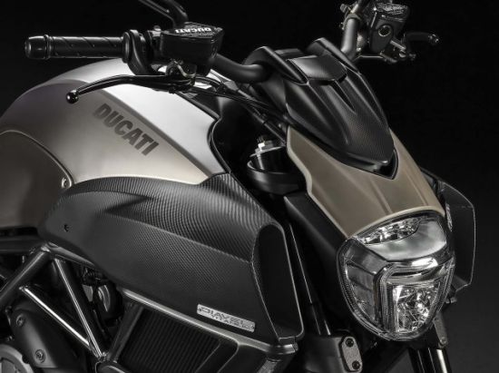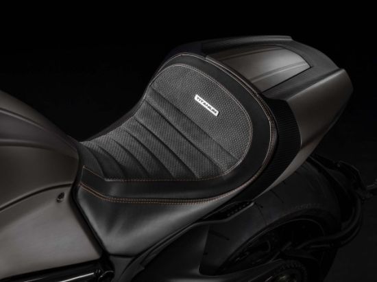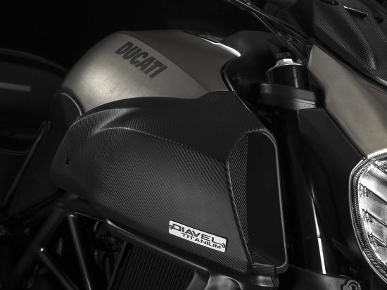 杜卡迪限量版鈦金大魔鬼很多細(xì)節(jié)都是重新設(shè)計(jì)的:包括駕駛座椅,寬大的碳纖維進(jìn)氣口,碳纖維散熱器,前置風(fēng)擋,前后擋泥板,小鏈輪護(hù)罩,齒輪箱蓋,排氣管中前段覆以黑色陶瓷涂層,不銹鋼排氣尾段則是呈現(xiàn)金屬拉絲效果。