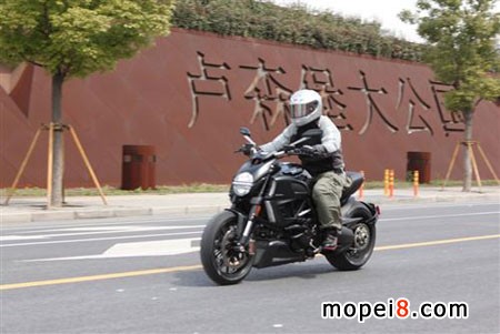 值此機會,中外媒體記者們深度體驗了Diavel非同尋常的駕乘性能。非同尋常的駕乘性能,自然離不了高科技元器件的支撐。Diavel配備了ABS(防抱死剎車制動系統),Ducati Traction Control(杜卡迪后輪附著摩擦力控制系統),以及Ducati Riding Modes(杜卡迪騎行模式)等諸多精密高科技元件,在科技配備方面堪稱豪華。勁酷的外觀,162馬力的引擎,以及僅重207公斤(約合456磅)的車體Diavel將動感與舒適完美地融合在一起,帶來前所未有的勁爽騎行體驗。性能與格調從未如此完美地融合在一起。特別加工處理過的240后胎,配合性能卓著的杜卡迪車身不管是在你鐘愛的道路上騰挪輾轉,還是晚上偶爾騎出去兜兜風都能輕松帶出顛覆傳統力學規律的傾角,給你不同凡響的操控體驗。