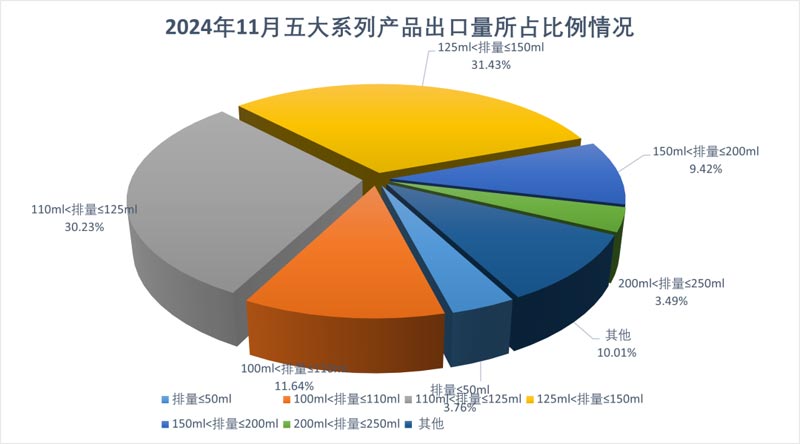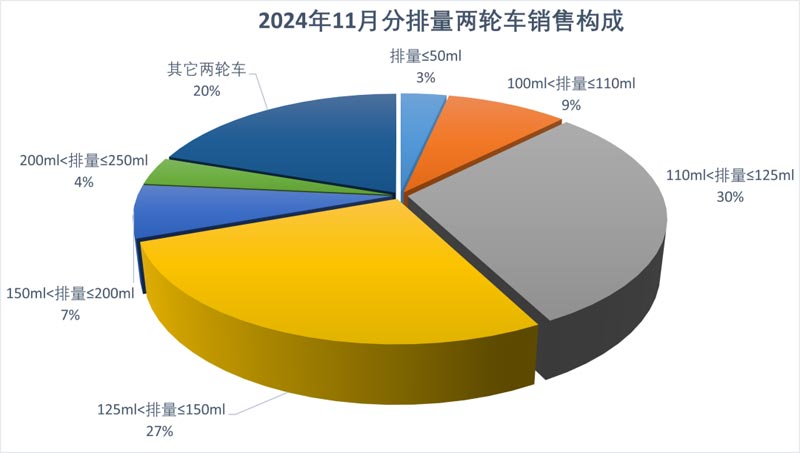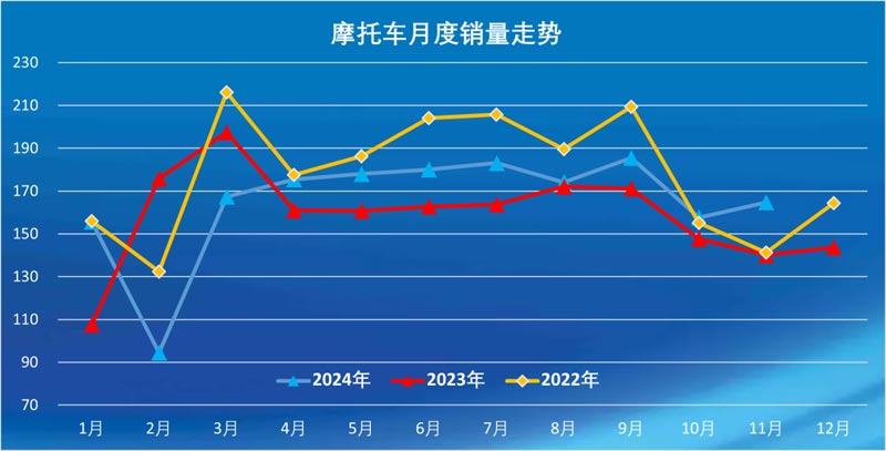 11月,全行業(yè)完成燃油摩托車產(chǎn)銷139.52萬(wàn)輛和137.79萬(wàn)輛,產(chǎn)銷量環(huán)比增長(zhǎng)4.32%和4.65%,同比增長(zhǎng)15.41%和14.86%;據(jù)商會(huì)不完全統(tǒng)計(jì),電動(dòng)摩托車產(chǎn)銷26.75萬(wàn)輛和26.91萬(wàn)輛,環(huán)比增長(zhǎng)1.27%和3.86%,同比增長(zhǎng)0.43%和9.46%。11月共產(chǎn)銷摩托車166.26萬(wàn)輛和164.7萬(wàn)輛,環(huán)比增長(zhǎng)3.81%和4.52%,同比增長(zhǎng)12.71%和13.95%。其中二輪車產(chǎn)銷142.37萬(wàn)輛和140.74萬(wàn)輛,環(huán)比增長(zhǎng)4.6%和5.42%,同比增長(zhǎng)13.71%和14.38%。大排量休閑娛樂(lè)摩托車(排量250cc以上,不含250cc)產(chǎn)銷6.25萬(wàn)輛和5.48萬(wàn)輛,產(chǎn)量環(huán)比增長(zhǎng)5.75%,銷量環(huán)比下降10.16%,同比增長(zhǎng)58.23%和41.23%。三輪摩托車產(chǎn)銷23.89萬(wàn)輛和23.96萬(wàn)輛,產(chǎn)銷量環(huán)比下降0.62%和0.49%,同比增長(zhǎng)9.27%和11.45%。