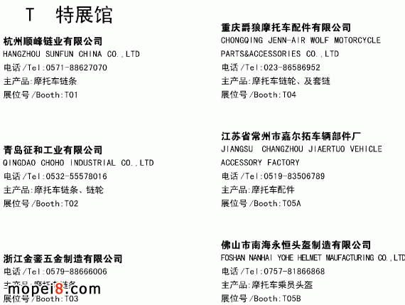 2013春季(濟南)全國摩配會參展企業(yè)基本資料