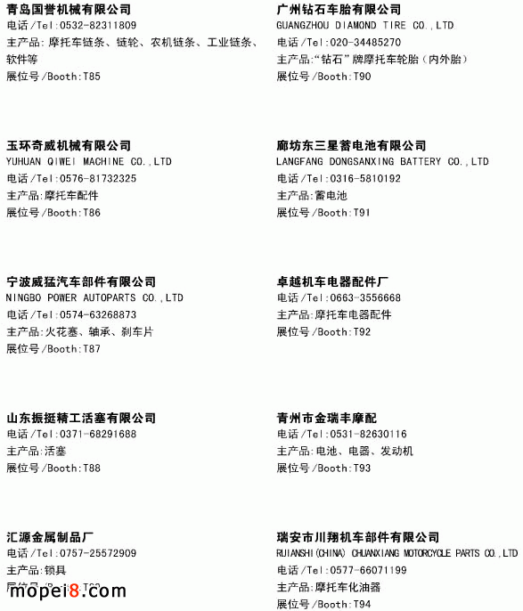 2013春季摩配展參展企業資料