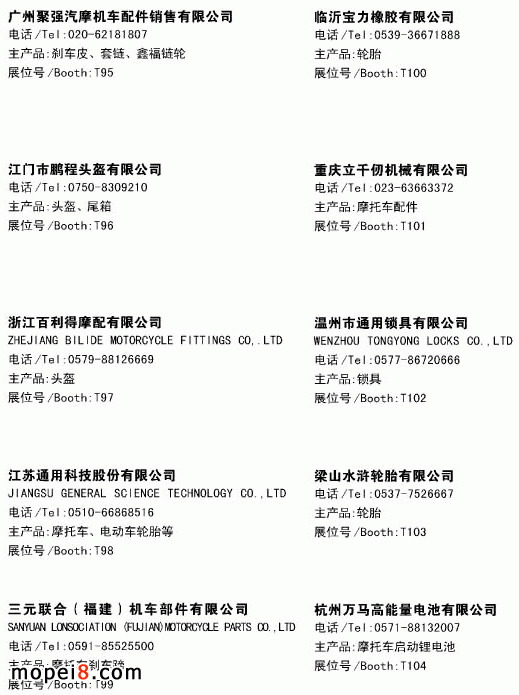 2013春季摩托車配件展會參展企業資料