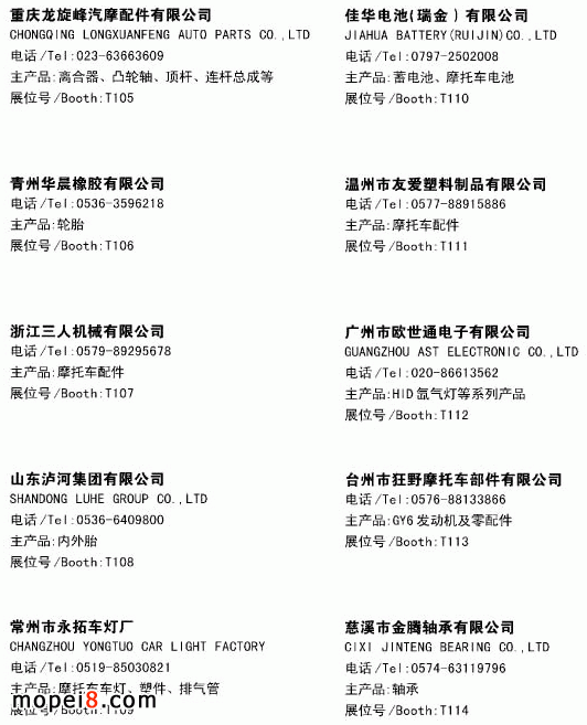 2013春季(濟南)全國摩配會參展企業(yè)基本資料