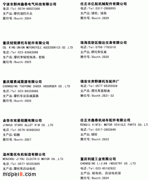 第三十三屆(2013春)全國摩托車及配件展示交易會已于2013年4月25日在濟南國際會展中心召開,2013春季全國摩配會已過去一個月了,仍有一些摩配同仁問到關于此次的展會情況及參展企業的信息,為方便需要了解此次展會信息的同仁,現將參展企業的主營產品及聯系電話發布出來。