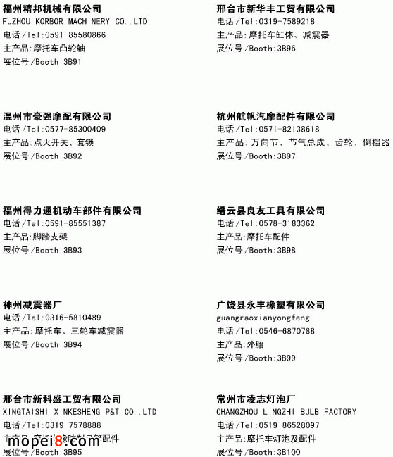 第三十三屆(2013春)全國摩托車及配件展示交易會已于2013年4月25日在濟南國際會展中心召開,2013春季全國摩配會已過去一個月了,仍有一些摩配同仁問到關于此次的展會情況及參展企業的信息,為方便需要了解此次展會信息的同仁,現將參展企業的主營產品及聯系電話發布出來。