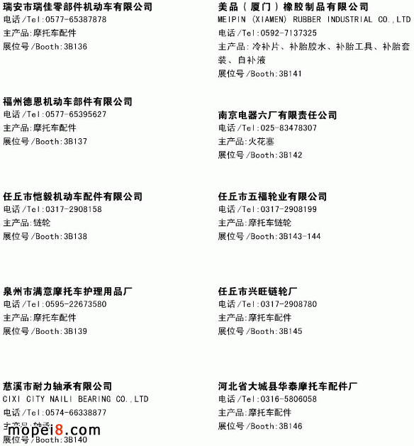 第三十三屆(2013春)全國摩托車及配件展示交易會已于2013年4月25日在濟南國際會展中心召開,2013春季全國摩配會已過去一個月了,仍有一些摩配同仁問到關于此次的展會情況及參展企業的信息,為方便需要了解此次展會信息的同仁,現將參展企業的主營產品及聯系電話發布出來。