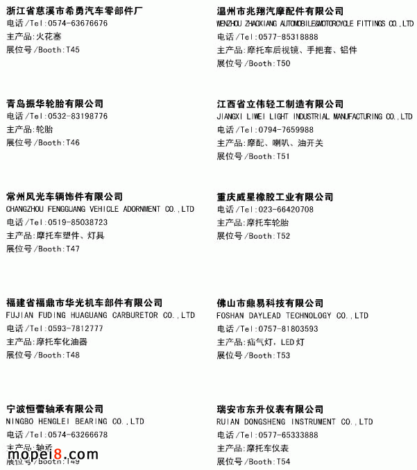 2013春季摩配展參展企業(yè)資料