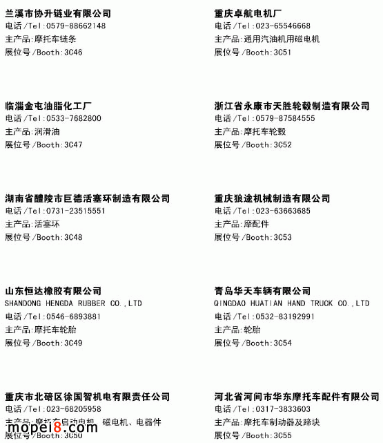 2013春季(濟(jì)南)全國(guó)摩配會(huì)參展企業(yè)基本資料