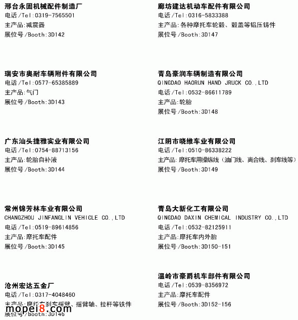 部分參加特展的企業已加入到摩配吧會員,展示更多的企業資料。期待您的加入!
