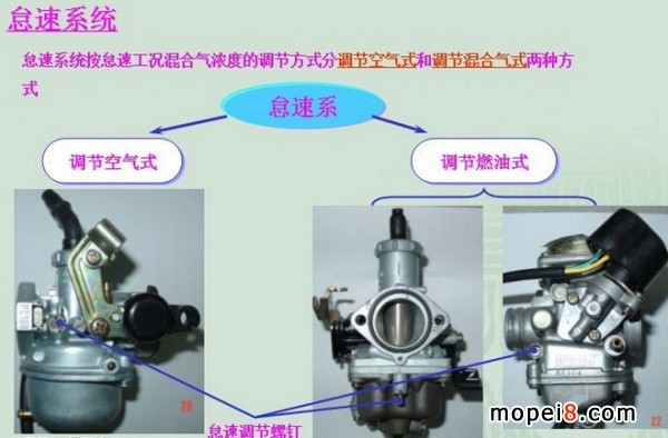 改裝車應用柱塞式化油器,柱塞式化油器具有加速快、功率大、結構簡單等優點是改裝追求動力和高速的最好選擇;塞柱相當于節氣門,是用來控制發動機轉速的,調整螺釘一個是調混合氣,一個是調柱塞高或節氣門開度(控制進氣量)