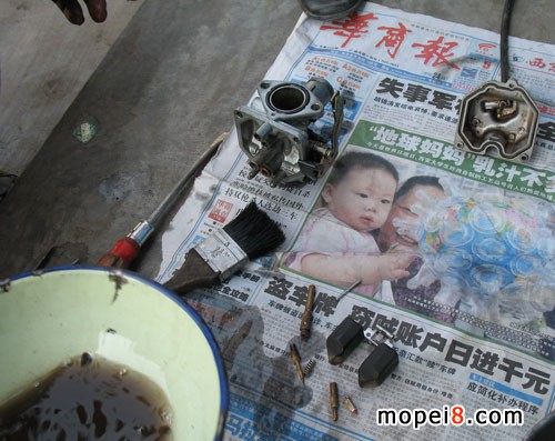本想去把自己的車的化油器清洗一下.排上PP讓大家看看.可董師傅說沒有什么問題最好不要去拆.我的車跑了8500公里了.現在天熱.一點就著.
