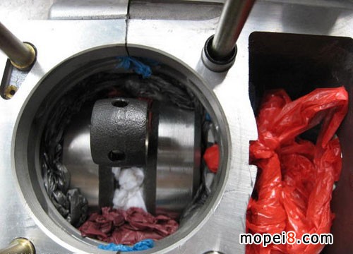 用好多塑料袋填塞所有縫隙,防止鋁粉掉進發動機.