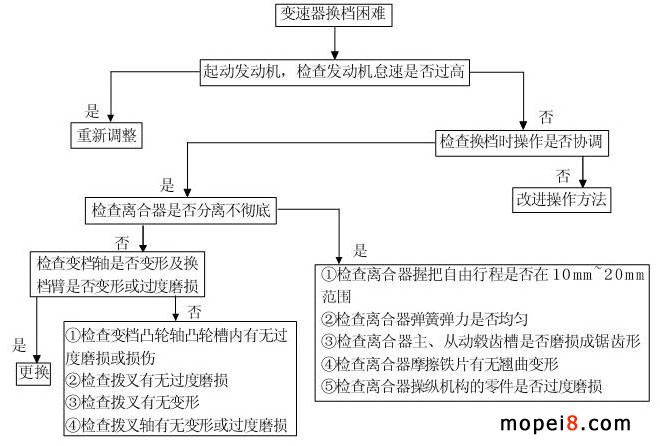 摩托車維修論壇--變速器換擋困難故障診斷流程圖
