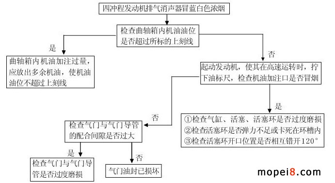 摩托車維修論壇--四沖程發動機排氣消聲器冒藍煙故障診斷流程圖