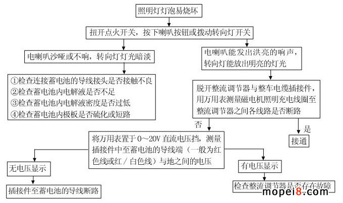 摩托車維修--照明燈燈泡易燒壞故障診斷流程圖